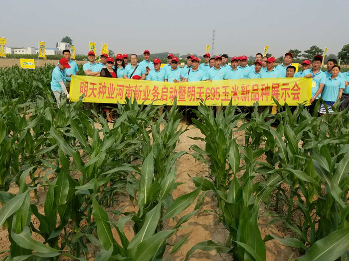 2017年5月21-22日,雜交玉米事業(yè)部、河南營銷中心和河北明天種業(yè)有限公司在河南鄭州和滎陽兩地召開成功“明天種業(yè)河南新業(yè)務啟動暨”明天695“玉米新品種展示會“來自河南區(qū)域玉米業(yè)務核心合作伙伴60余人參加了本次大會。公司玉米育種家、河北明天種業(yè)總經(jīng)理師洪飛,副總經(jīng)理張偉,河南營銷中心負責人盧超及河北、河南的銷售團隊出席了會議,本次會議是2017年黃淮海地區(qū)首場玉米新品種春播展示會,驚現(xiàn)“萬頃金浪一抹綠”,引起了包括河南在內(nèi)的黃淮海玉米業(yè)界的關(guān)注。