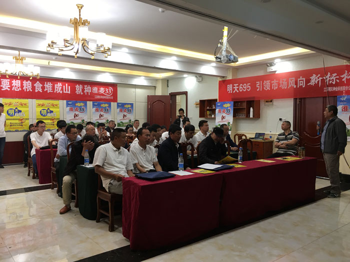2018年5月9日,靈璧縣金大地農業(yè)科技有限公司、泗縣幫農種業(yè)有限公司分別在上午和下午召開了淮麥33觀摩會。今年的天氣比較特殊,前期倒春寒使得小麥受凍較為嚴重,再加上后期頻繁的雨水,導致赤霉病在短期內大范圍爆發(fā),部分小麥品種紛紛“中招”,讓農戶遭受嚴重損失。而淮麥33自2014年推向市場以來,憑借其優(yōu)異的綜合抗性,經受住了不同年份惡劣天氣的考驗,“他”的表現(xiàn)一直是那么的棒,“他”的抗性一直是那么好。今年的淮麥33表現(xiàn)依舊優(yōu)秀,受到靈璧、泗縣兩地零售商朋友的一致好評。