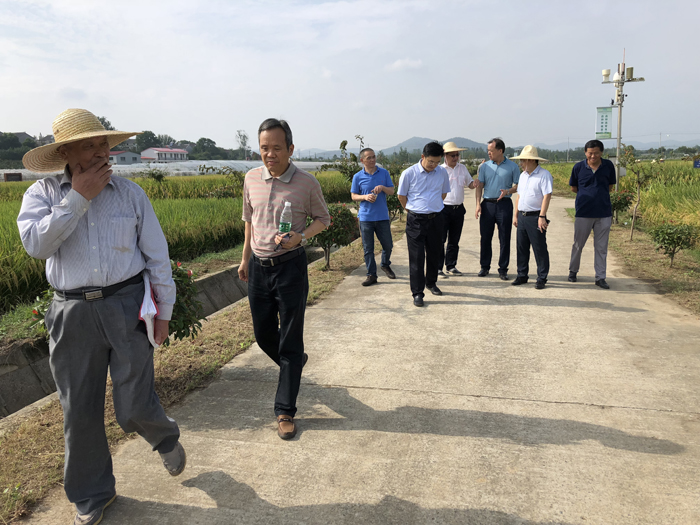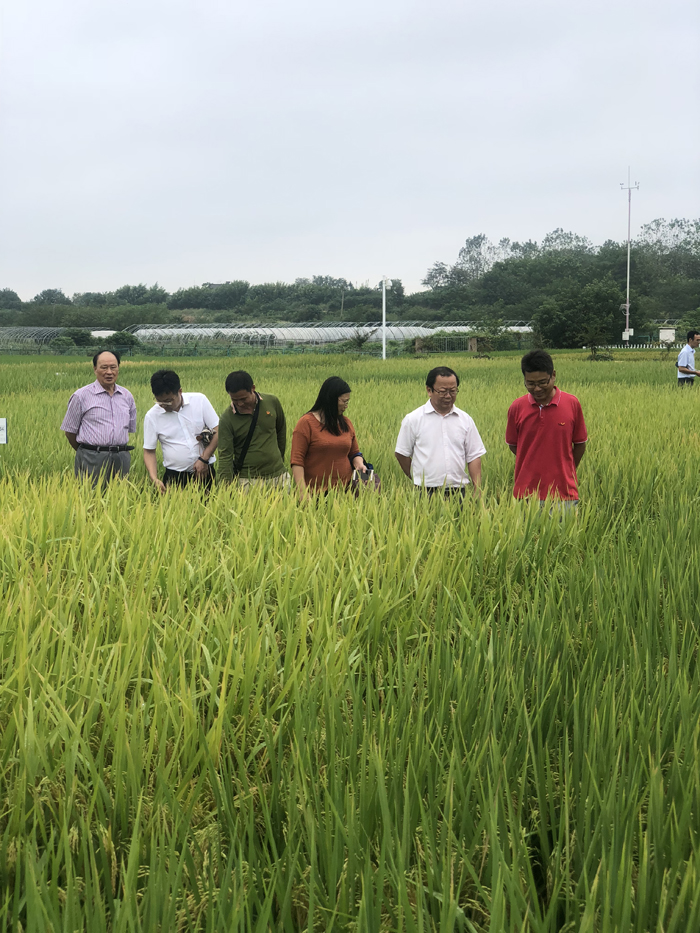 蔣秘書長認真聽取了嚴總對淳化科研育種基地的總體概況及公司水稻主要科研工作進展的簡要匯報之后,親自深入田間,逐一考察了水稻新品種展示田,品比、鑒定試驗,育種材料田,省級中間試驗,以及對外承接綠色通道、聯合體等試驗的具體情況。蔣秘書長對公司淳化基地各項科研工作取得的階段性成績,給予高度肯定。并指出,明天種業當前水稻育種工作思路清晰,方向明確,以培育品質優良、適宜輕簡化栽培、節本增效的“綠色品種”為目標,選育出一批適宜機插、直播等多種種植方式且米質優的水稻新品種,從而緊緊抓住了國家農業供給側結構性改革和國家農業高質量發展戰略的需求,為進一步推動國家發展高效農業、現代農業,提供了強有力的產品支撐與技術保障。