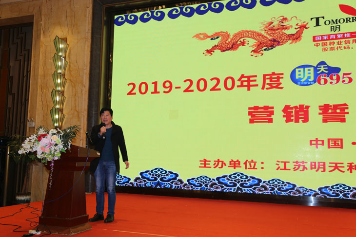 明天695縣級經(jīng)銷商南陽余飛、豐縣張志偉、蕭縣徐飛及鄉(xiāng)鎮(zhèn)經(jīng)銷商新蔡時衛(wèi)華等作為代表發(fā)言。他們充分肯定明天695在當?shù)氐漠a(chǎn)品表現(xiàn),并分享推廣明天695的成功經(jīng)驗,最后表示將進一步加大推廣宣傳力度,爭取2019-2020年度明天695銷售有更大的突破。