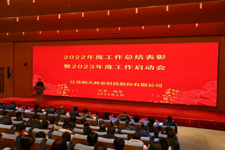 嚴總在工作報告中指出2022年是明天種業不平凡的一年,在面對新冠疫情、市場競爭日趨激烈的嚴峻形勢,公司領導班子同心同德、精心組織;各級管理人員積極響應、主動作為;一線員工愛崗敬業、工作勤奮;全體員工齊努力,共克難,經受住了考驗。公司各項事業穩步推進,成果豐碩。2022年銷售和利潤取得新的雙突破,實現四連增;公司被農業農村部列入“國家種業陣型企業”和再次被認定為“中國種業信用骨干企業”,綜合排名第11位;“制種大縣+龍頭企業”項目順利實施,金湖產業園建設基本完成。2023年是公司第一個五年規劃實施的關鍵第四年,全面完成全年的工作目標任務對明天種業未來的發展意義深遠。公司將全面貫徹落實黨的二十大精神,全面落實“以國內市場為主體,創新升級實現跨越,以國外市場為突破,積聚資源,注重實效”的戰略部署,以“搶抓種業振興機遇,拼出更加美好明天”為行動綱領,超前謀劃、統籌管理、積極落實,確保2023年經營目標任務的實現。